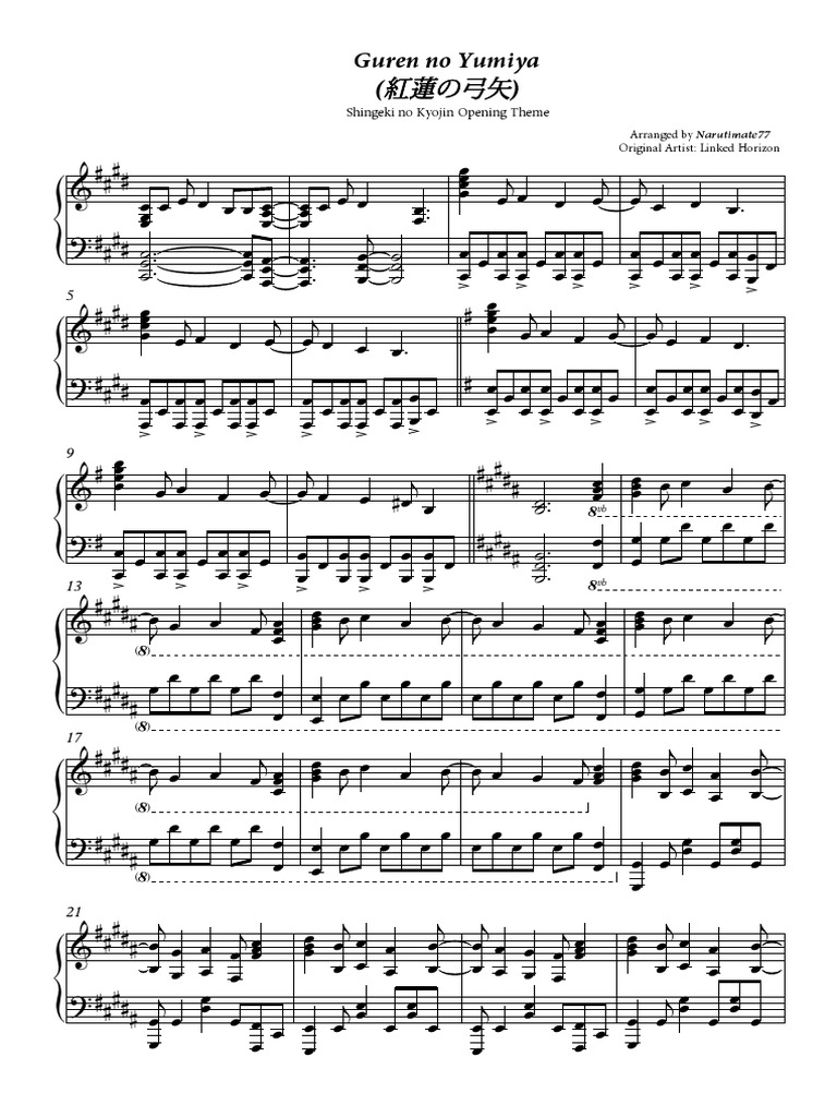 Attack On Titan Season 1 Opening Piano Sheet Music - Songs with a partially open lock icon are fully playable, but have all player features disabled.
