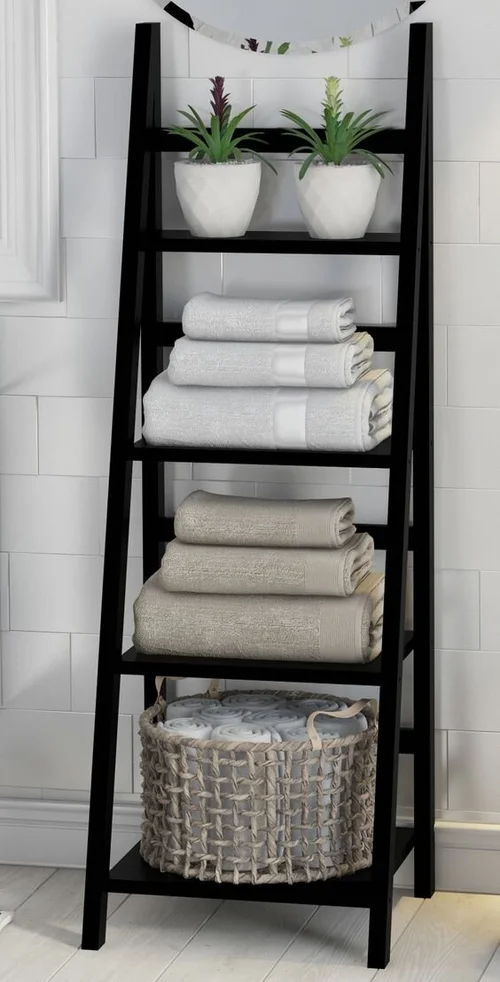 Uncategorized Bathroom Ladder Shelf With Baskets : This beautiful wood leaning ladder shelf designed to fit over the toilet is perfect for adding storage without having to drill holes in the wall. Folding plants stand 3/4 tier ladder shelf wood bookshelf storage rack home deco multi flower stand shelves bonsai display.