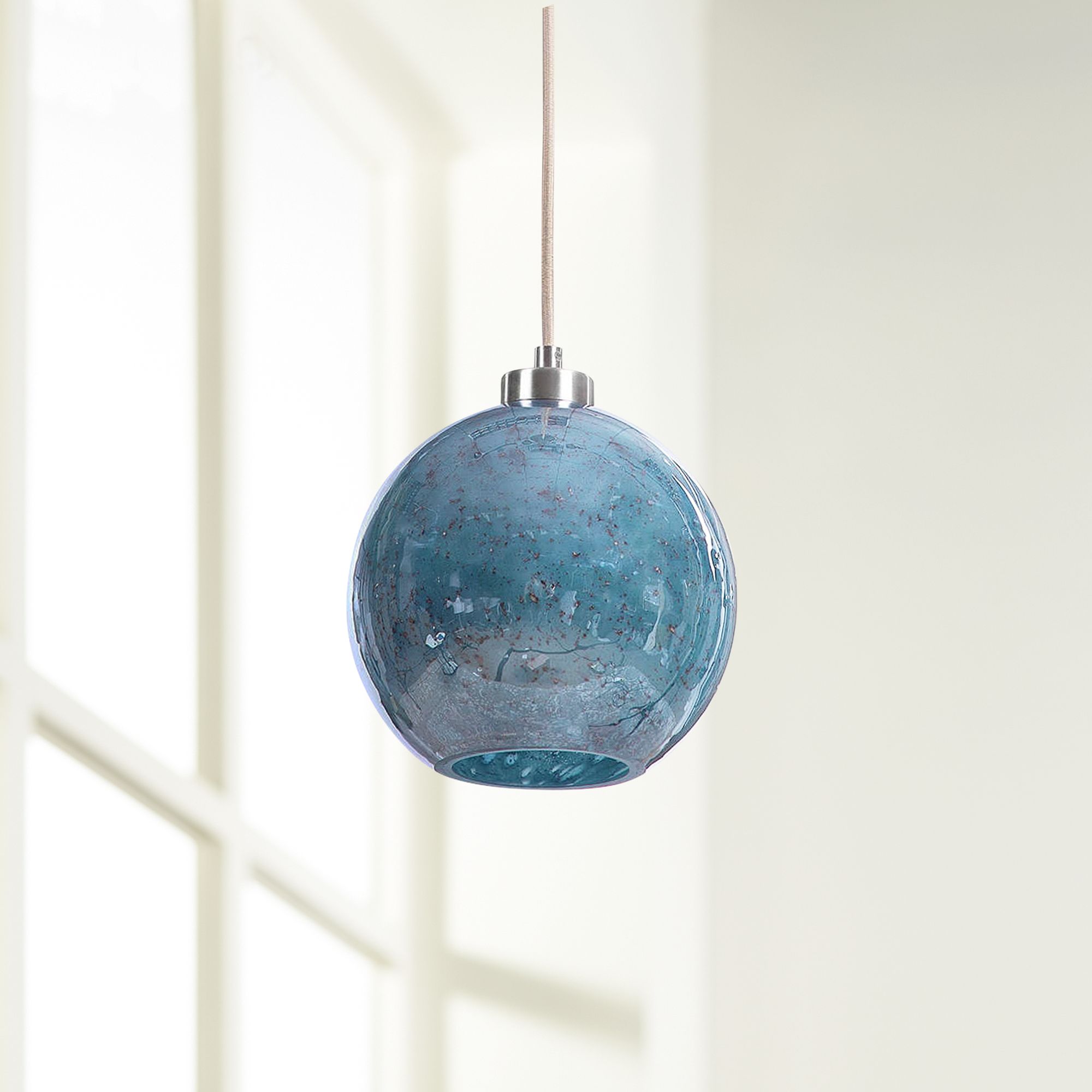 Uncategorized Blue Colored Glass Pendant Lights / Certificate of authenticity, worldwide shipping with total insurance coverage. The pendant lights bring colorful accents to this mostly neutral kitchen.